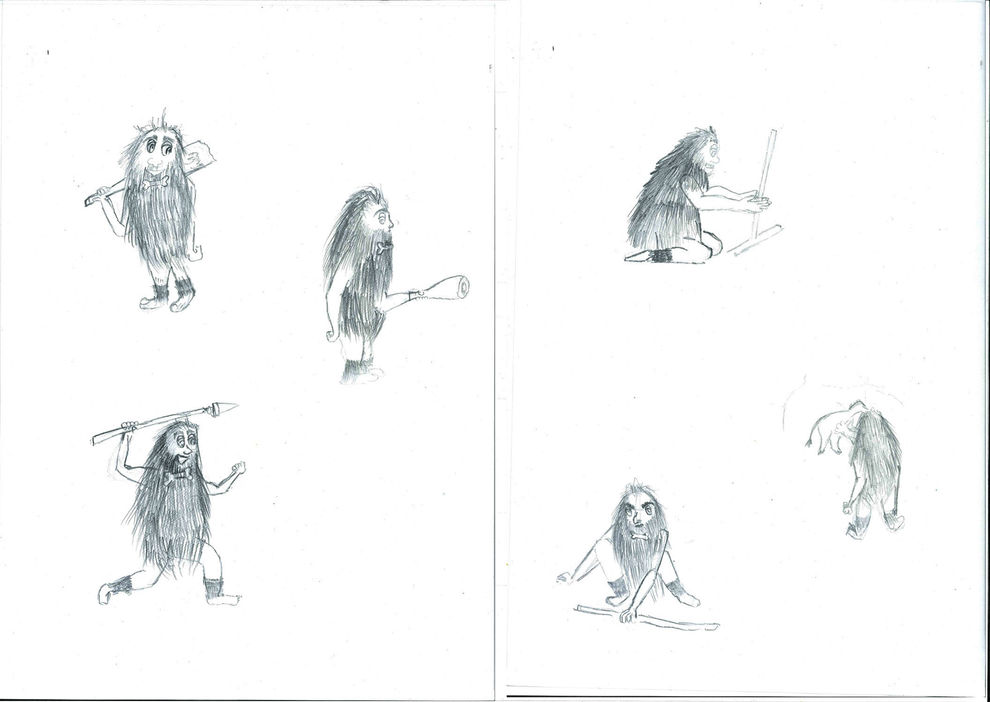 When creating Click, I conducted in-depth research and developed his character based on a compelling narrative. His design reflects these traits, incorporating symbolic elements—his bow is inspired by bone, and his leg hair resembles boots. What sets Click apart is his distinctive appearance; instead of wearing traditional clothing, he covers himself entirely with his own thick body hair, making him a truly unique figure in the prehistoric world.